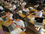タブレットの操作が少しずつ上手になってきました。算数や道徳、いろいろな学習において、活用しています。これから、さらに技能を高めていきたいと思います。