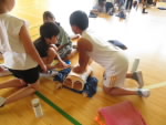 9月5日に「救命講習」を実施しました。訓練用人形とAEDを使い、心肺蘇生を実際に行いました。グループで役割を決め、緊急の時にどのような対応をすればよいのか、学ぶことができました。