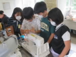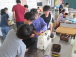 家庭科の時間にミシンの操作について学習しました。タブレットで使い方等を確認しながら、みんなで協力して縫う準備を進めることができました。これからの製作がとても楽しみです。