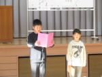 計画委員のみなさんが「赤い羽根募金」のお知らせをしました。「赤い羽根」に関わるクイズなどをして、子供たちはとても盛り上がっていました。募金期間は12月2日から4日になります。