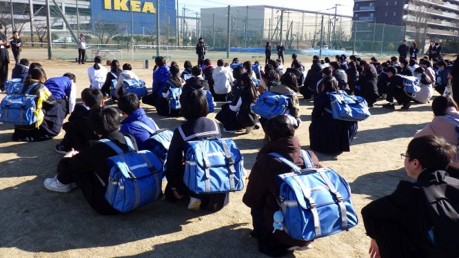 学活後、震度5強を想定した地震の避難訓練と一斉下校が行われました。
