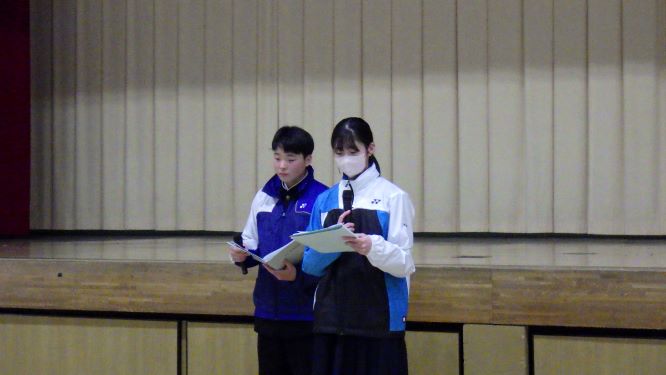 学年集会では、学級委員の2人が3学期にクラス全体で頑張っていきたいことを話てくれました。