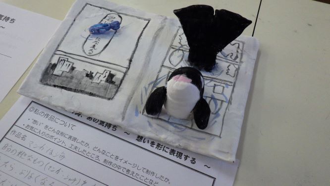 美術の時間では、2学期に完成させた作品の鑑賞会を行いました。