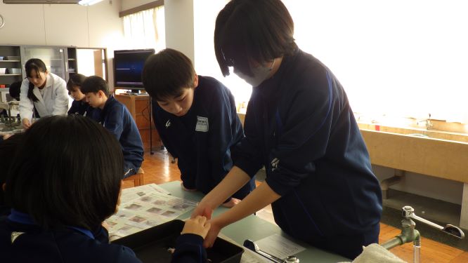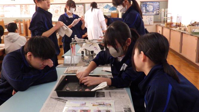 3時間授業ラストの今日、理科の時間ではブタの目の解剖を行いました。