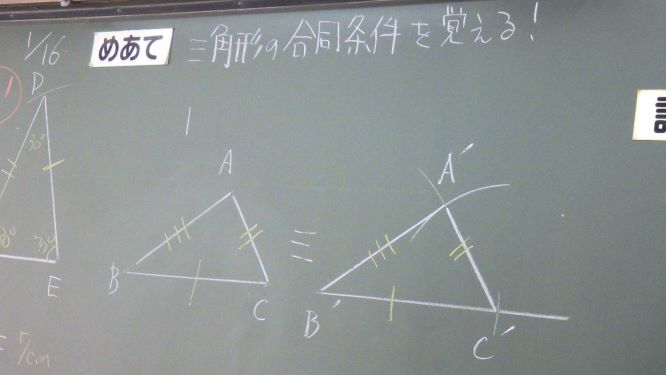 来週の月曜日には、三角形の合同条件の暗記テストがあります。土日でしっかり覚えたいですね。