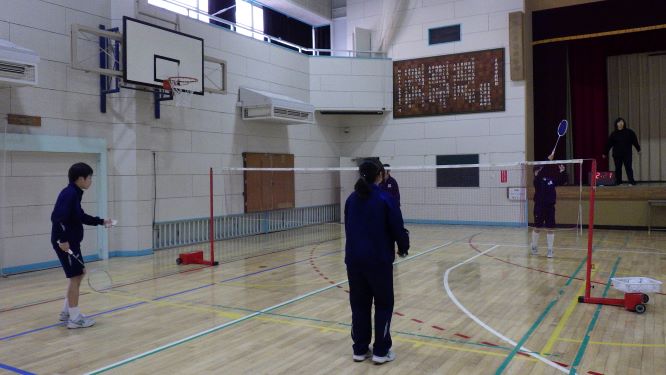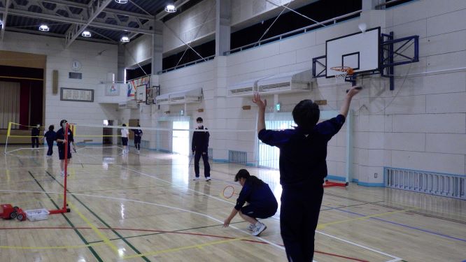 体育の時間では前回から引き続き、バドミントンに取り組んでいます。
