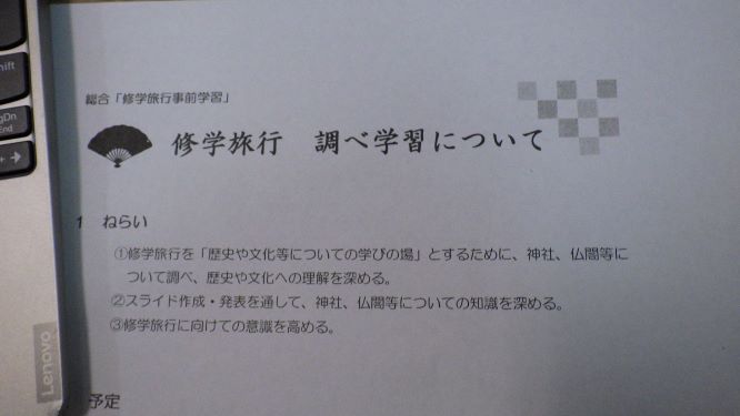 今日の5時間目から、修学旅行に向けて事前学習が始まりました。