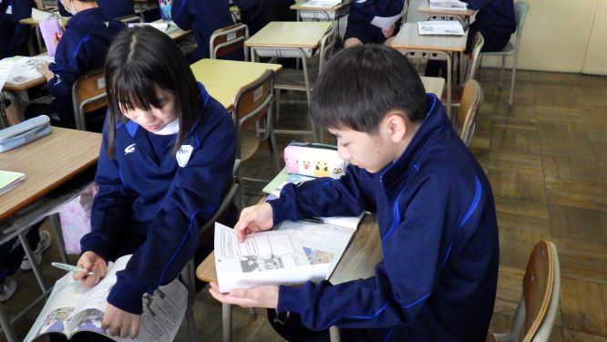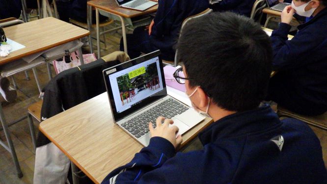 6時間目は修学旅行の事前学習で京都・奈良の寺社仏閣調べ学習の続きを行いました。