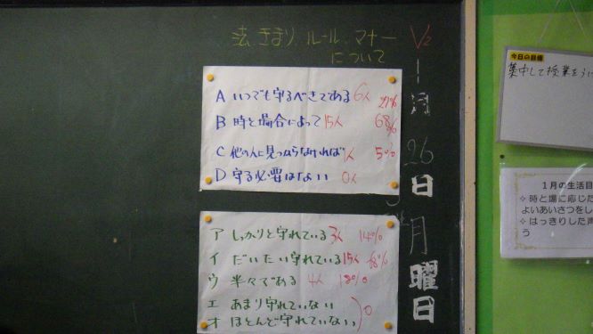 今日の道徳の時間では、法やきまり、ルール、マナーについて考えました。
