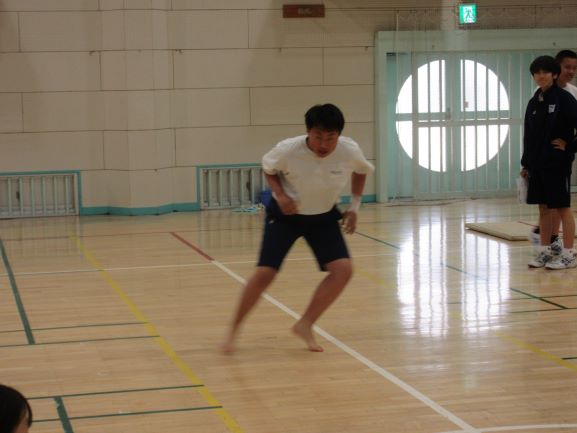 バドミントン部のメンバーで一列になってすき間なくかけています。