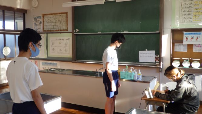 ここからは今日の様子です。理科の授業では、友達と協力して課題に取り組んでいました。
