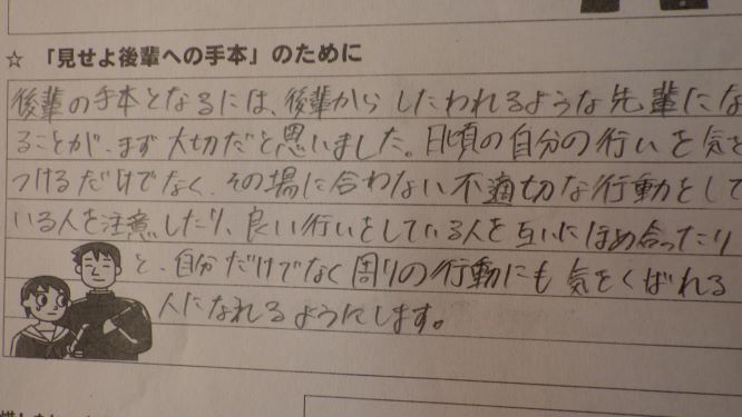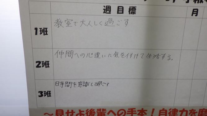 今日から「自律力アップキャンペーン」がスタートです。見せよ後輩への手本!