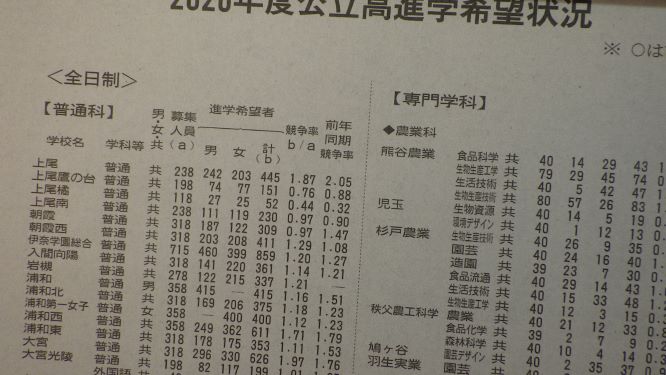 埼玉公立高校の志願状況が発表されました。埼玉県教育委員会のホームページでも確認できます。