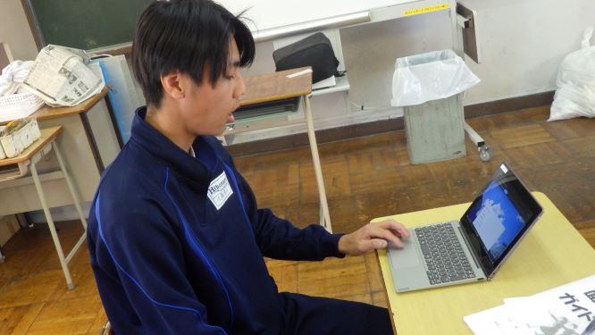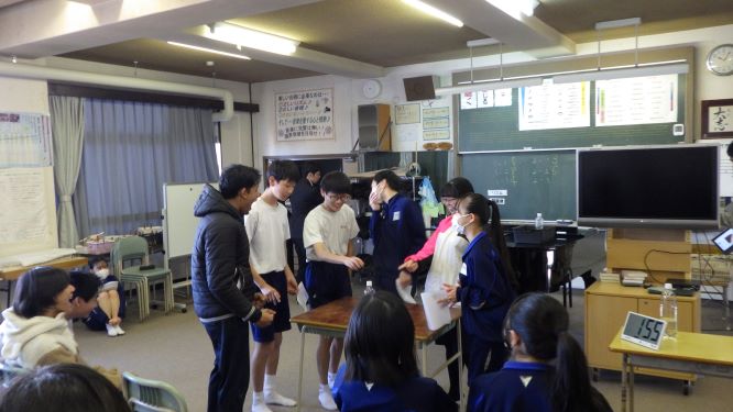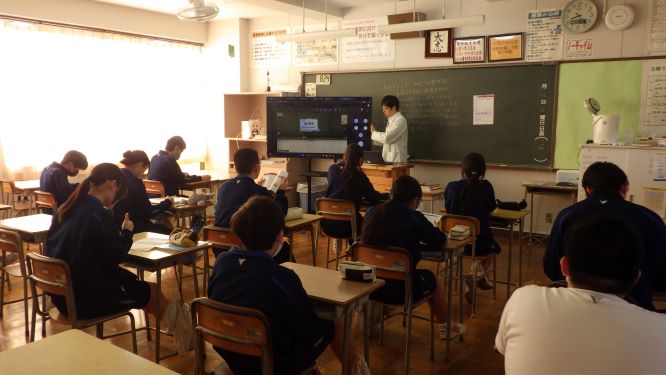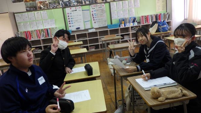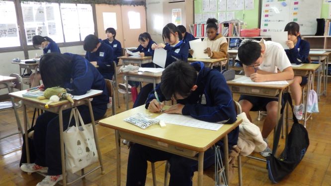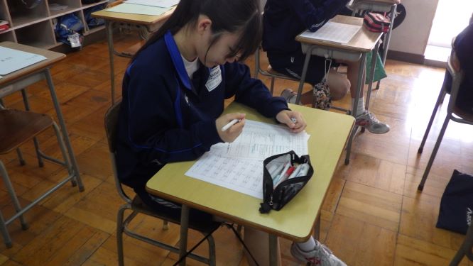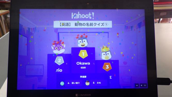英語の授業はクイズ大会をしました。トップの人の得点は…あっ高い!(すみません)