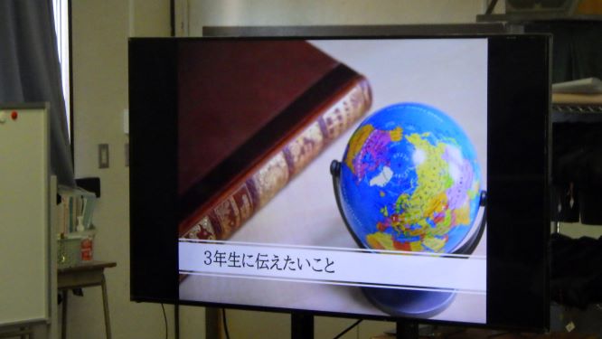 M先生から、「3年生に伝えたいこと」のお話がありました。