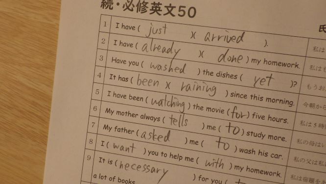 放課後、英語の宿題テストの再テストを行いました。挑戦者は4名だけでしたが、全員が前回の得点を大きく上回りました。