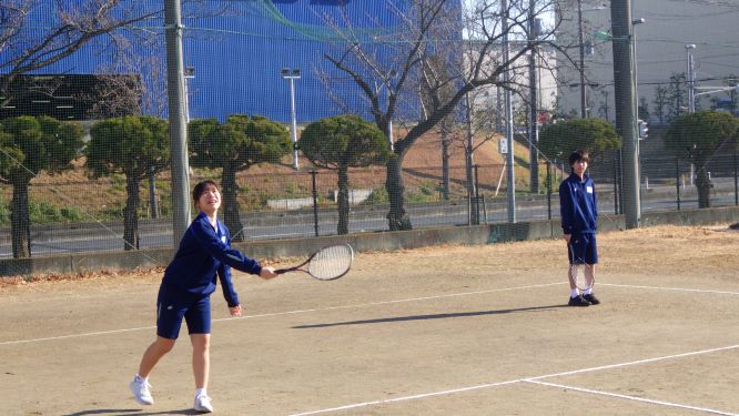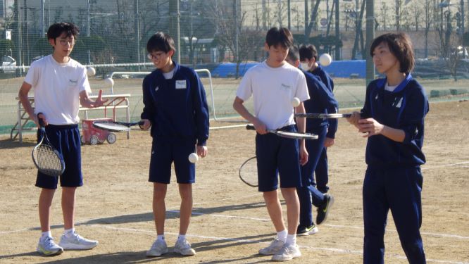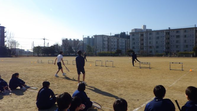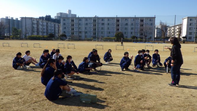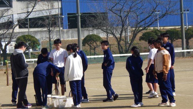青空の下で体育。1月とは思えないポカポカ陽気。