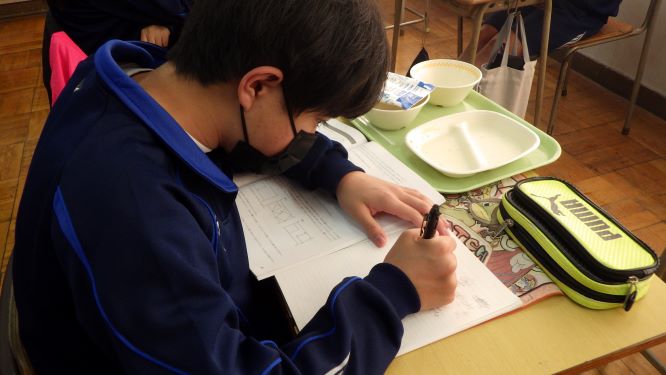 明日は平常授業です。給食も再開です。給食セットを忘れずに。明日から本番!