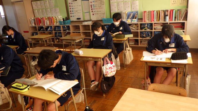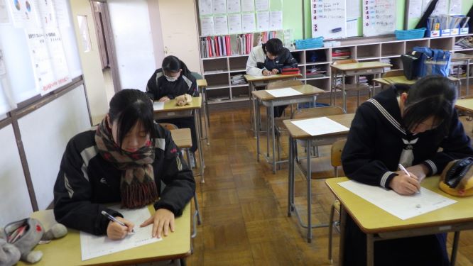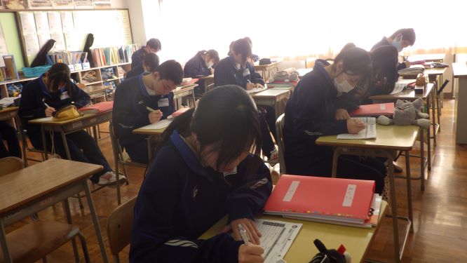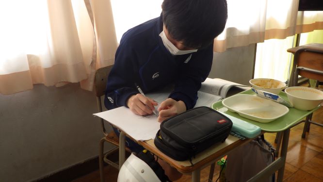 今日は午後の授業がありません。家で入試や高校での学習の準備を。今日も風が冷たくて寒かったですね。ぶるぶる。