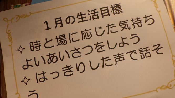 朝の会で、生活安全委員会から今月の目標が示されました。あいさつもはっきりした声も大事。ホントに。
