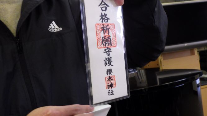H先生が合格祈願のお札を買ってきてくれました。これでばっちり!