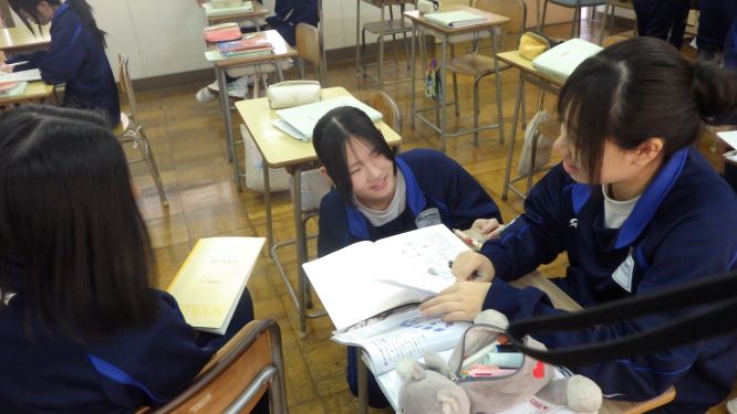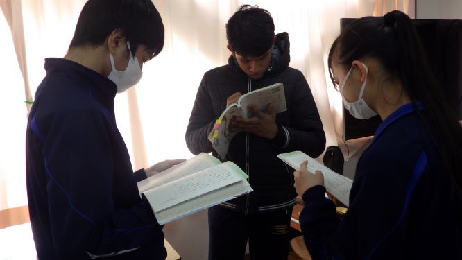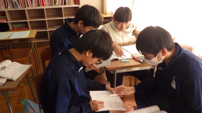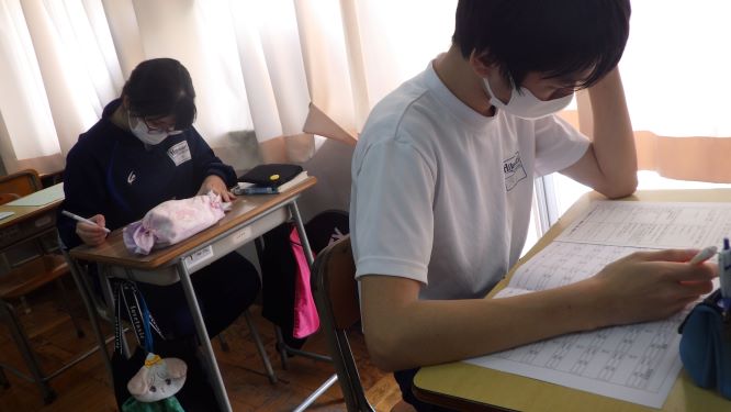 でも、入試に向けての勉強は怠りません。教え合い。どれどれ?ふむふむ。