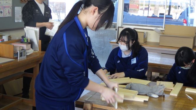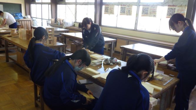 技術室では、本立てづくりの作業が熱く行われていました。やすりでごしごし。