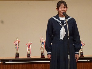 いつもとは違う会場での開催となりましたが、安心して本番を迎えられるように準備をしてくださった先生方、そして夏休みからたくさん練習をしてくれていた伴奏者や指揮者の仲間にも感謝をしましょう。(略)そして私たち3年生は、このステージに立てたこと、仲間と歌えたことにも感謝の気持ちを忘れず、これからも力を合わせて前に進んでいきましょう。