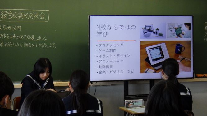5時間目には、先週に続いて上級学校調べの発表会を行いました。