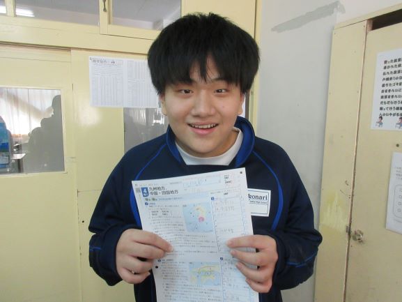 社会の単元テストで、いい点が取れてうれしそうなRさん。頑張りましたね。