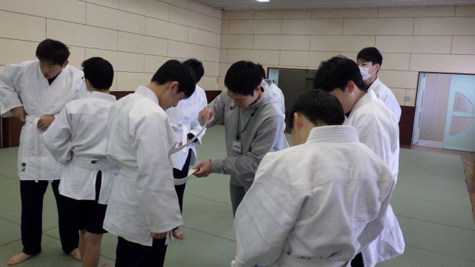 体育の授業では、バドミントンが終わり、今回から柔道の授業が始まりました。