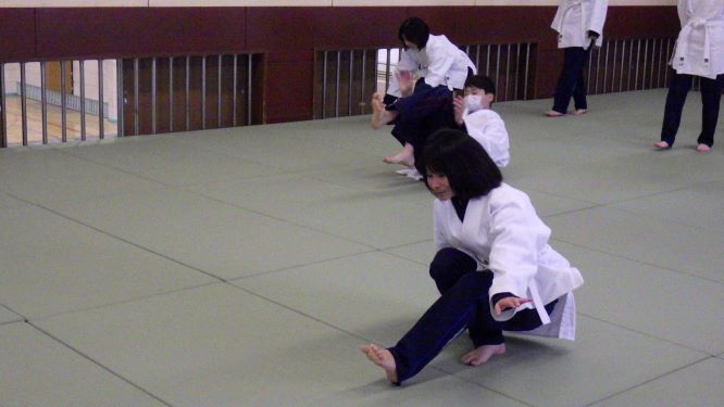 「膝車」を練習しました。一連の流れを確認しながら、取り組んでいます。