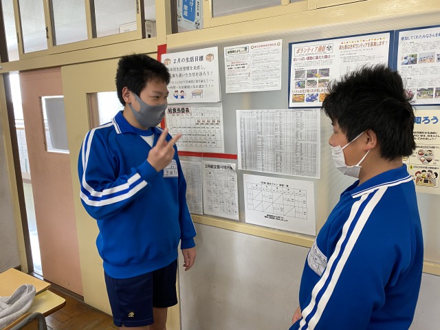 体験活動では、実際に話さず「挨拶、名前、趣味、お礼の言葉」などの自己紹介を手話のみで行いました。