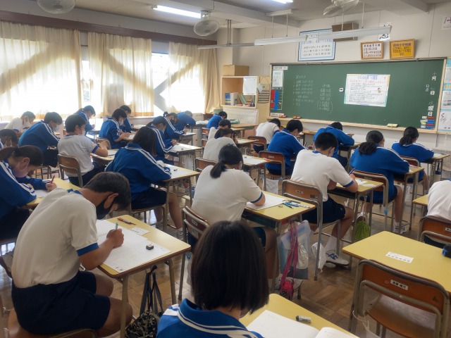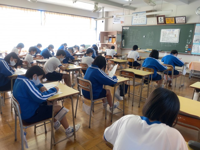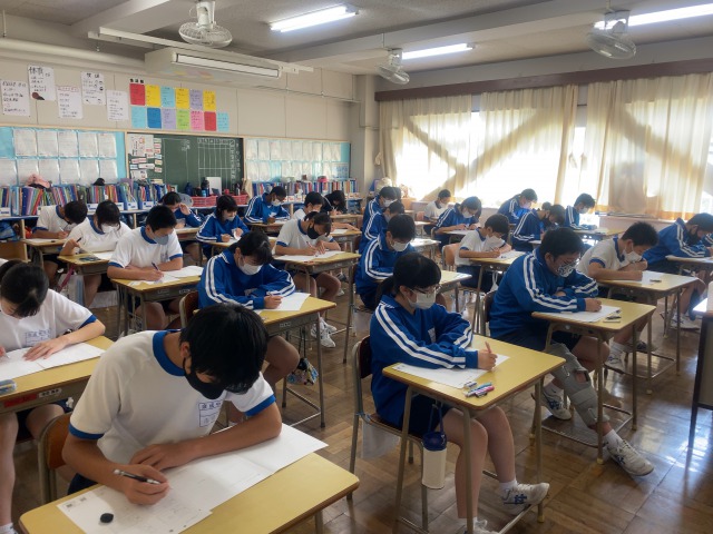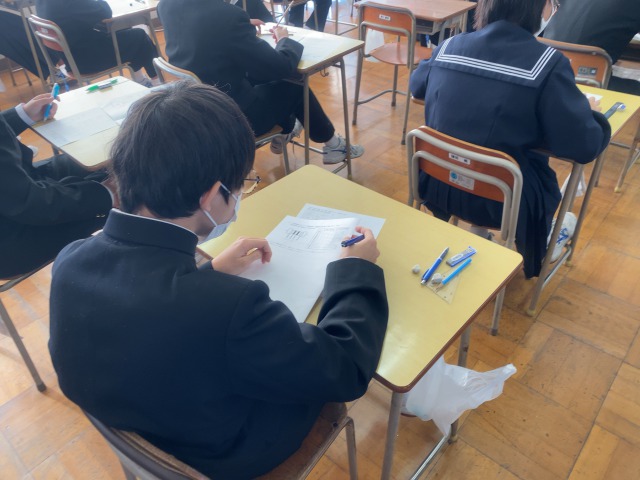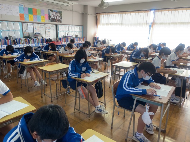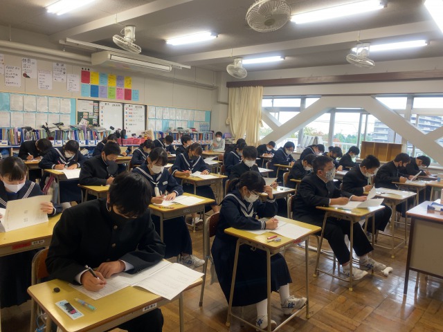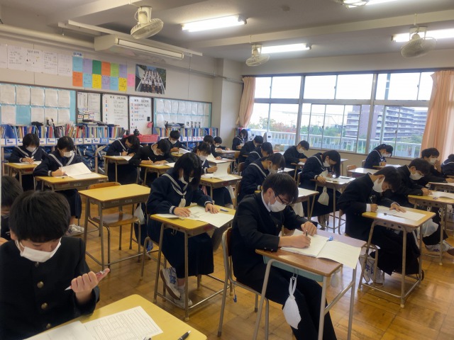 本日は2学期中間テストです。教科は、英語・国語・数学・理科・社会となっております。
