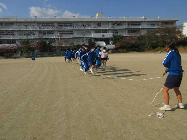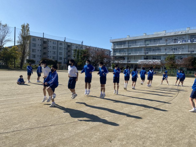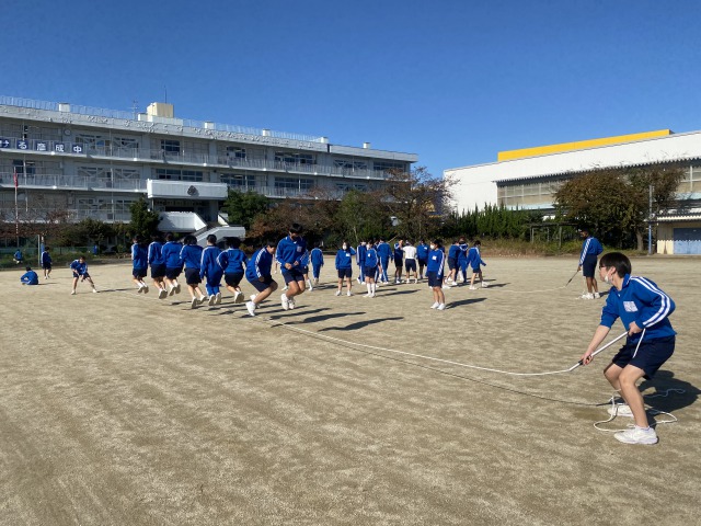 体育発表会に向けて、2学年は昼休みも大縄練習を行っています。