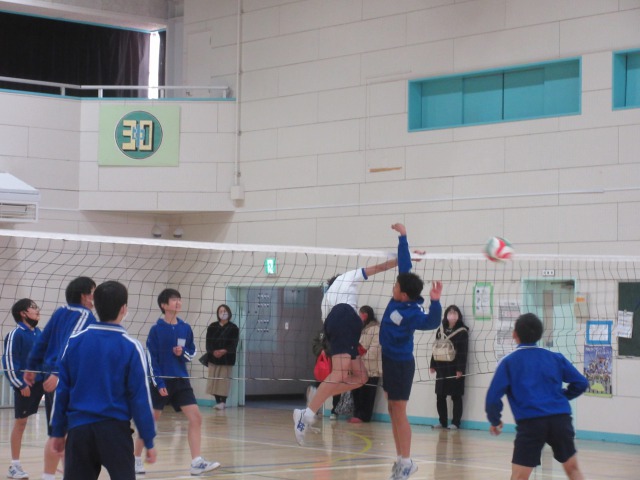 公開授業は体育でした。男子はバレーボール、女子はソフトボールとなっております。