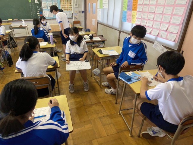 学級討議を行いました。議題は、「手形アートのデザインを考えよう」でした。