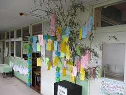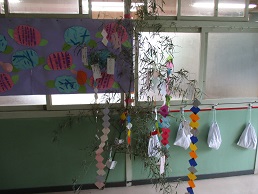 本日は、七夕ということで短冊に願いを書いて飾りました。