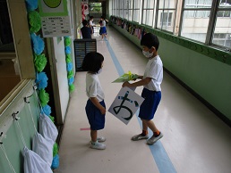 種をプレゼントしました。早く1年生が学校に慣れるように、上級生のみなさんはサポ