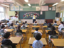 新入児童呼名では、「はいっ!」とはっきりとした声で返事をすることができました。