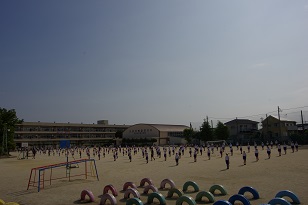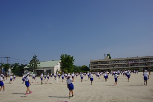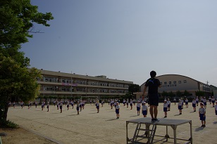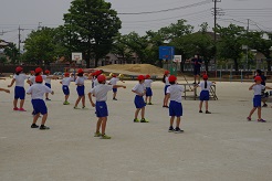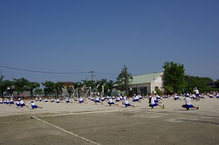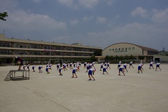 前後左右の間隔を保ちながら、元気いっぱい体を動かしていました。