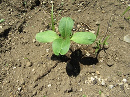 今日花だんを見に行ったら、どんどん成長していました!子葉とはべつの葉が生えてきていました。くきの長さ