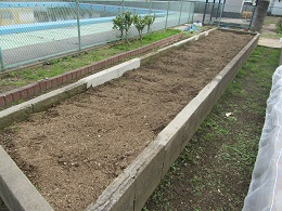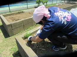 今日ヒマワリのたねをまきました。花だんにざっそうがたくさんはえていたので草むしりからしました。