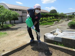 たっぷりとあいじょうをそそいで育ててください。学校がはじまったら、ヒマワリにそそいでいるあいじょうの数