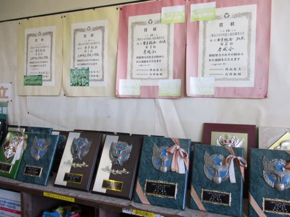その他にも校長室の前の廊下にも賞状が飾ってあります。