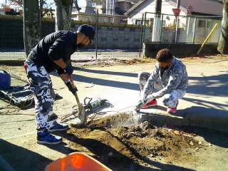 しばらく放置されていた花壇の掘り起こしと、コンクリートの破砕を行っていただきました。