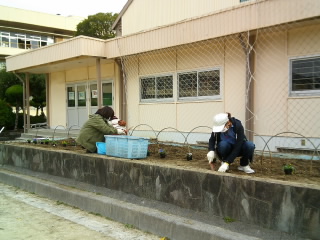 また、体育館前花壇の整備も行っていただきました。