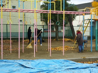 保護者の方のご協力のもと、落ち葉はきボランティアの活動が行われました。この季節、学校は落ち葉がたくさんです。