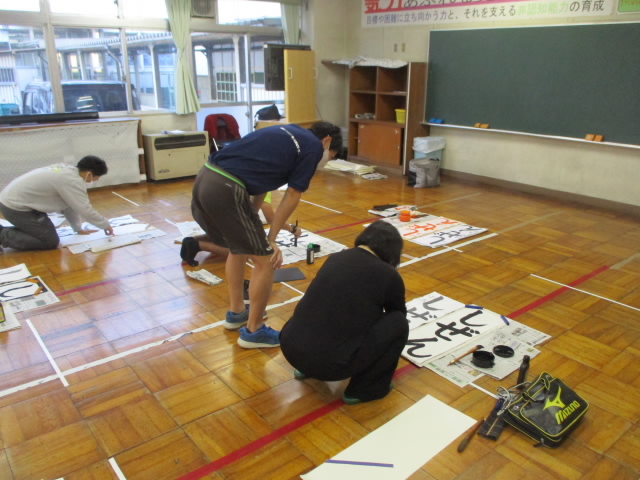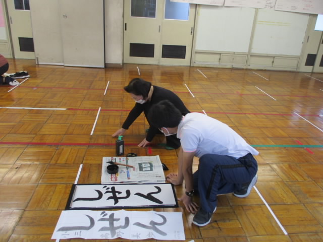書き初めの練習が始まるのに合わせて、放課後に職員も書き初めの実技研修をしました。