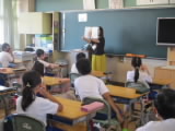 総合の学習で、5年生がゴーヤの苗を植えました。上手にグリーンカーテンができるよう、みんなで世話をしていきます。